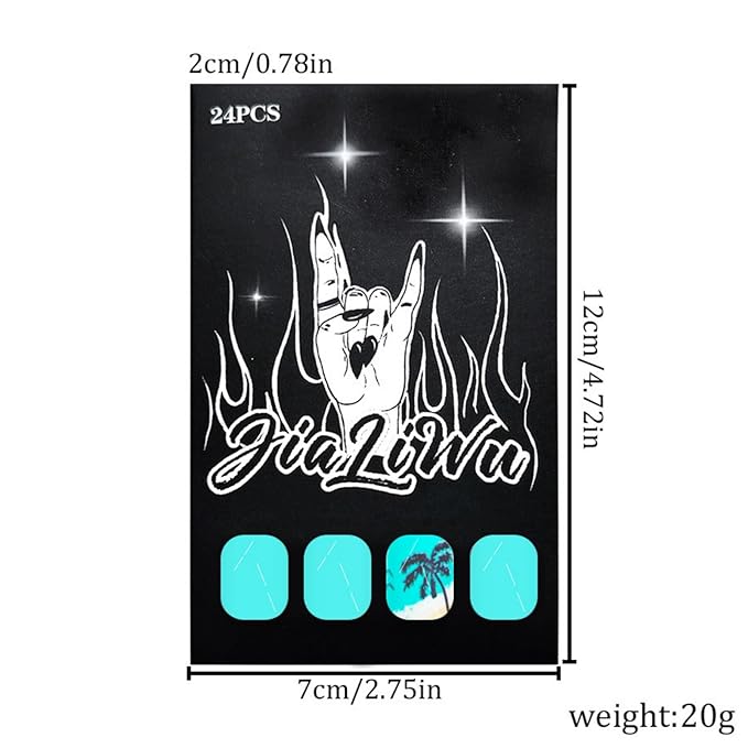 - Easy to Use:These blue nails with adhesive patch can be a perfect replacement for salon nails, it only takes 5 minutes to get your favorite manicure, saving money and time. If you want to wear a coconut tree nails for a long time longer , suggest holding your nails for a few more minutes when pressing them