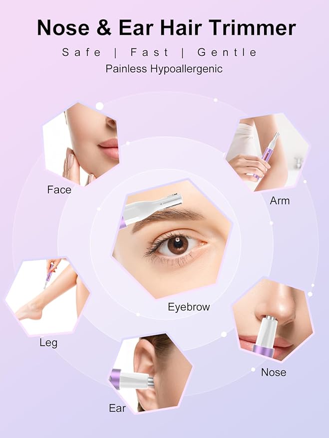 - Multifunctional Grooming Tool for Face & Nose: Discover the 2025 upgraded Ginity 2-in-1 nose and facial hair trimmer designed for women. This versatile beauty device handles nose hair, ear hair, eyebrows, beard edges, and unwanted facial fuzz with precision—helping you stay fresh and confident wherever you go