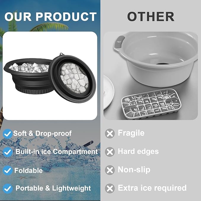 - Reusable & Easy to Use: Made from BPA-free, food-grade silicone, this bowl is durable and eco-friendly. Simply fill with water, freeze overnight, and enjoy a 5-minute ice bath—includes built-in ice cube molds for targeted cold therapy on cheeks, forehead, or jawline.