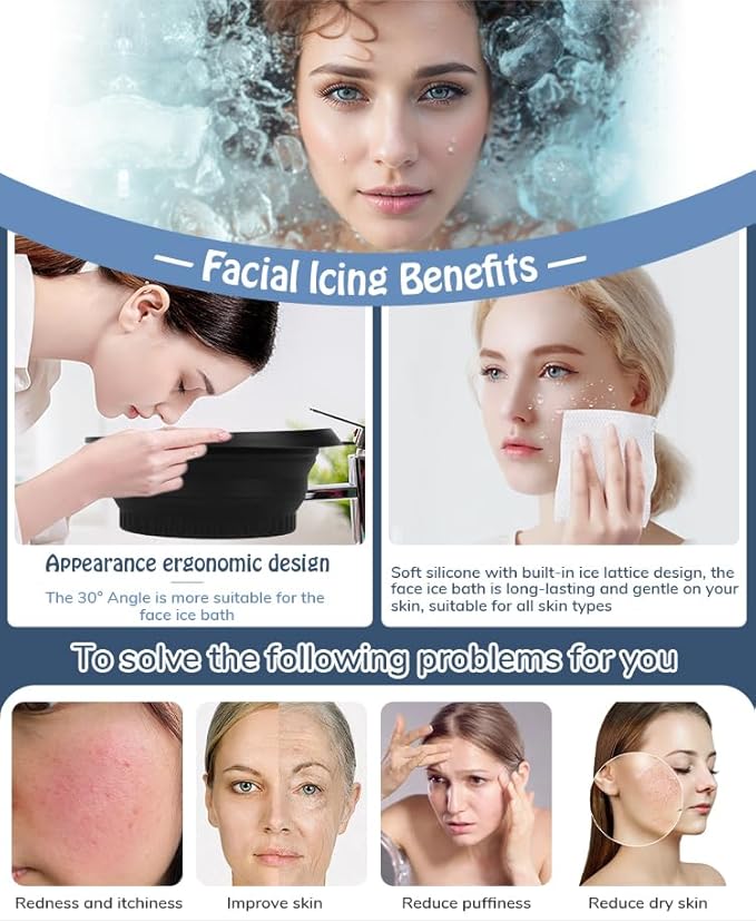 - Instant Puffiness & Redness Relief: Immerse your face in our ice bath bowl to reduce under-eye bags, acne inflammation, and facial redness. Perfect for post-facial treatments, sunburns, or morning skincare routines—clinically proven to soothe skin and tighten pores.