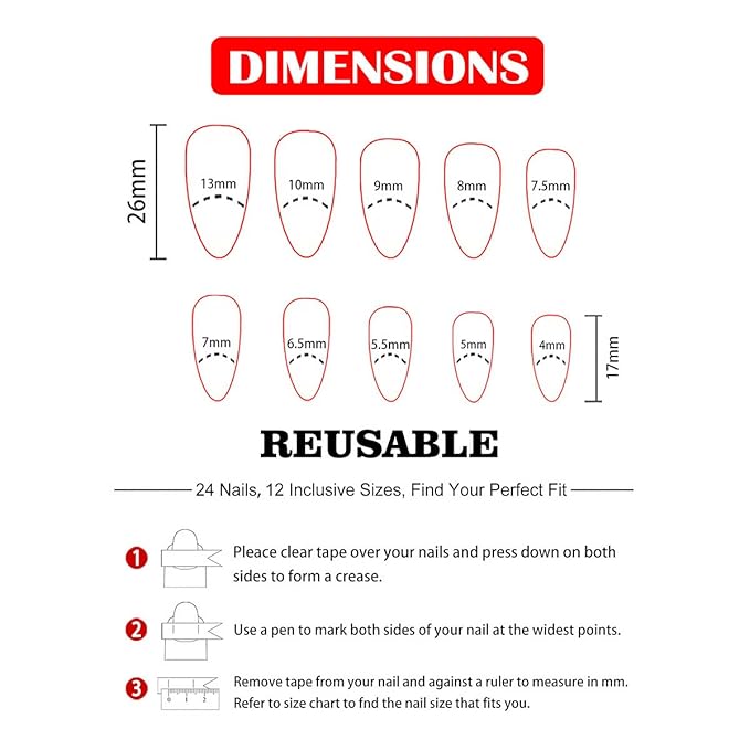 - Easy to use:After trimming and cleaning your nails,you only need to choose the right cute stick on nails,stick the jelly glue we provide, press the false nails on the jelly glue for 30 seconds to get your favorite nail art
