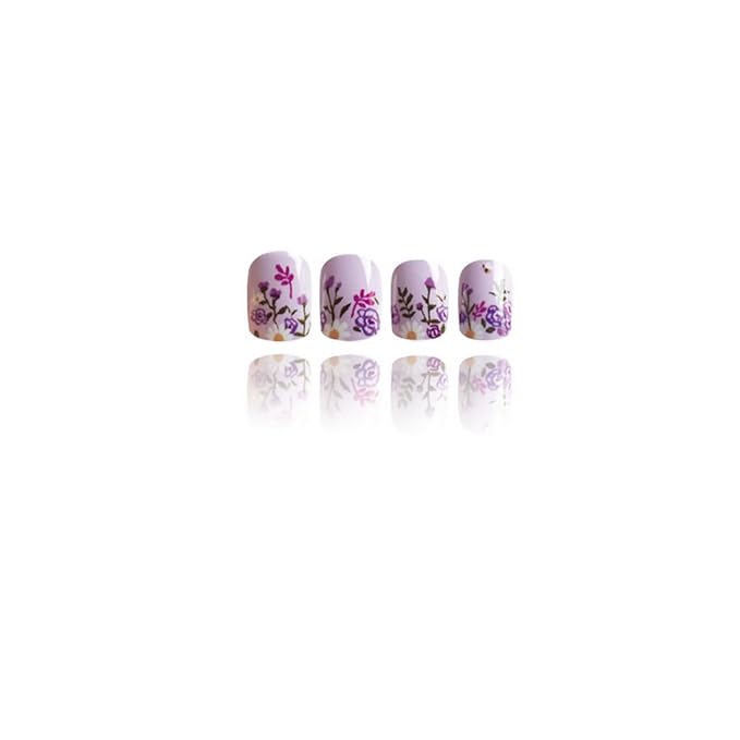 - High-quality False Nails: Made with quality materials, our set of 24 purple flower fake nails feature a trendy glossy acrylic nails design in glossy,give 24 pcs jelly gel 1 wooden stick 1 nail file perfect for manicure decoration