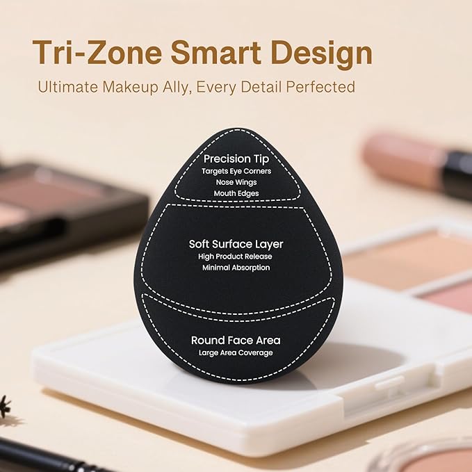 - 【Dual-Sided Pro Design】Waterdrop Powder Puff. Round side,Blends liquid foundation seamlessly; Triangular edge,Builds high coverage for concealer;Oversized (2.36"x3.15"),Covers more area for faster application