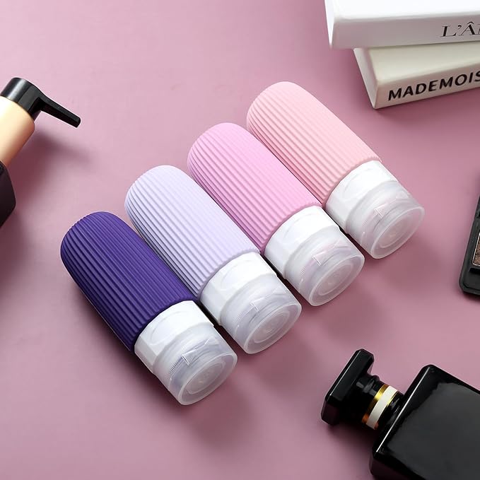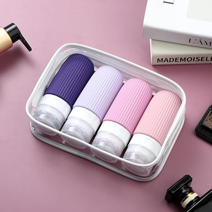 - TSA carry on approval: 4 pack 2 oz silicone travel bottles, very suitable for shampoo, conditioner, shower gel, lotion, hand sanitizer and shower gel. It is equipped with a high-quality zipper transparent wash bag, which saves space and allows you to travel long distance freely like a professional.