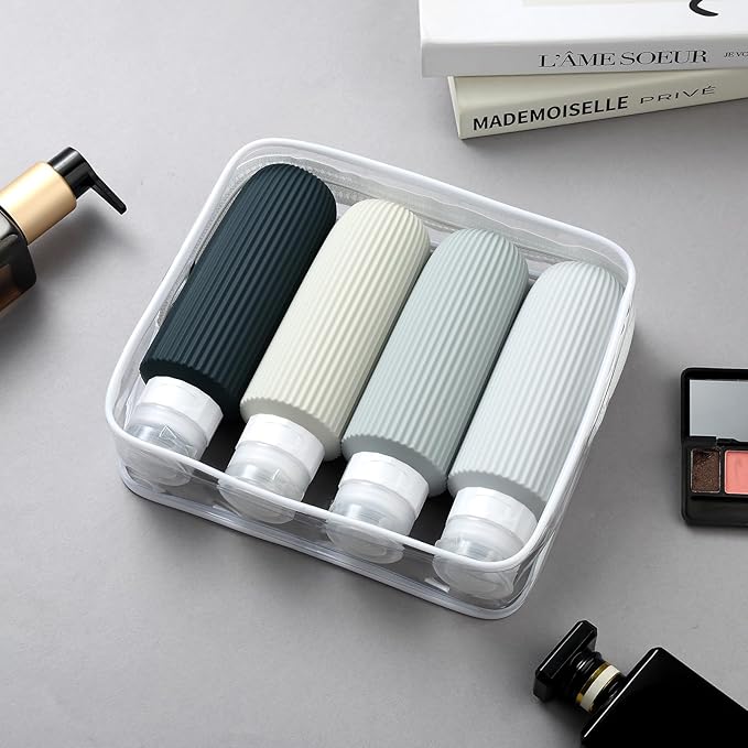 - Oversize 6oz travel bottle: Featuring a PVC toiletry bag, these travel-sized silicone bottles are perfect for storing and dispensing your favorite shampoos, lotions, and other liquids. Designed for convenience and durability, this travel set is a must-have for all your adventures.