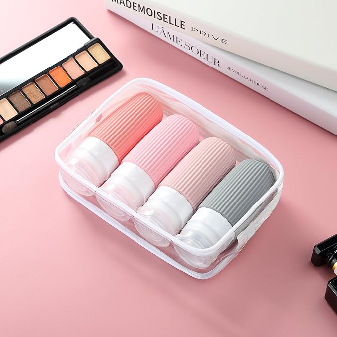 - TSA carry on approval: 4 pack 2 oz silicone travel bottles, very suitable for shampoo, conditioner, shower gel, lotion, hand sanitizer and shower gel. It is equipped with a high-quality zipper transparent wash bag, which saves space and allows you to travel long distance freely like a professional.