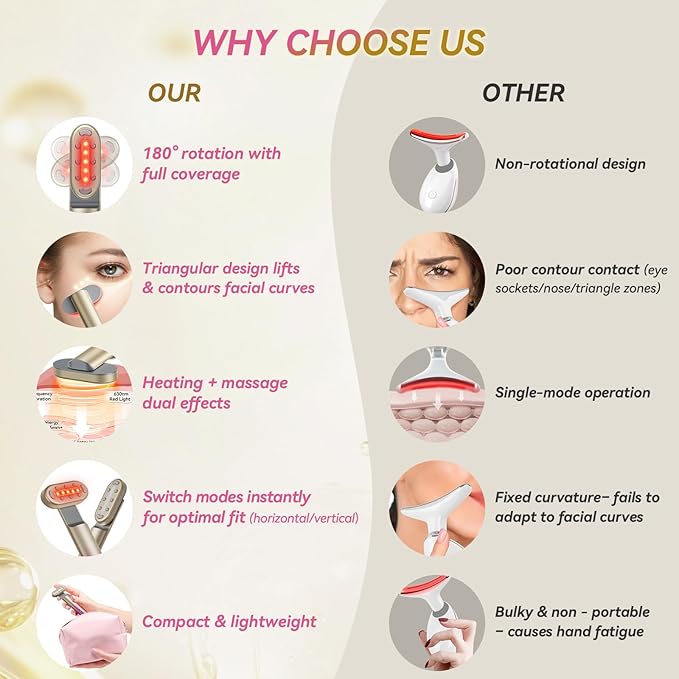 - Home Skincare: Enjoy convenient and efficient skincare at home, eliminating the need for beauty salon visits. The 180° rotating massage head ensures comprehensive care for every part of your skin, including the eyes, face, neck, hands, and back. For optimal results, use it 3-5 times a week for 5-10 minutes each session.
