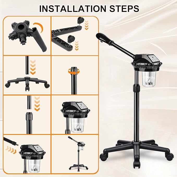 - 【Facial steamer on wheels】Steam face steamer solid and long-lasting base, 360° wheels make it moves smoothly, easy to install and remove. Working quietly.