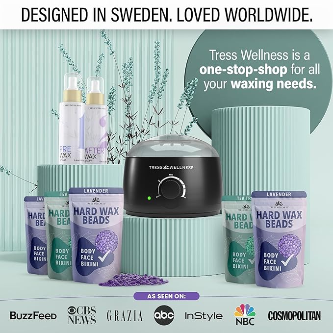 Tress Wellness Waxing Kit for Sensitive Skin – Safe for Face & Skin, Prep & Aftercare Spray, Easy to Use – At-Home Kit for Face, Bikini, Brazilian & Full Body – Black, No Display