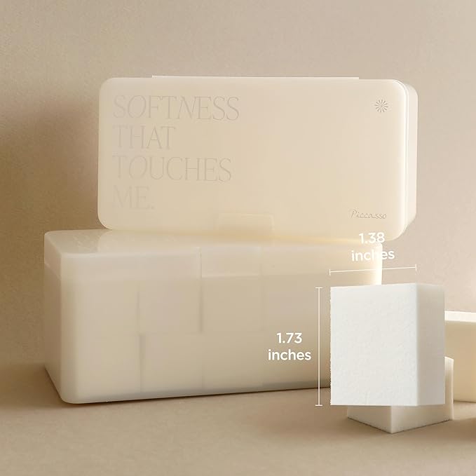 Piccasso Makeup Sponges for Foundation 20P – Latex Square Sponges for Face Makeup, Long-Lasting Sponges with Coating Surface, Ideal for High-Adherence & Hygienic Daily Use