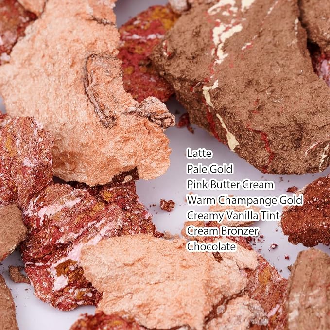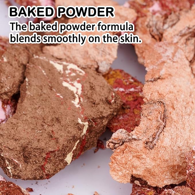 - MULTICOLOR: Includes three baked neutral eyeshadows in subdued yet vibrant shades; a creamy bronze highlighter that infuses the skin with glamorous warm tones; light gold and champagne shades that instantly highlight with a single swipe; and a creamy peach-pink blush that delivers a naturally sweet flush.