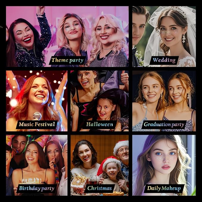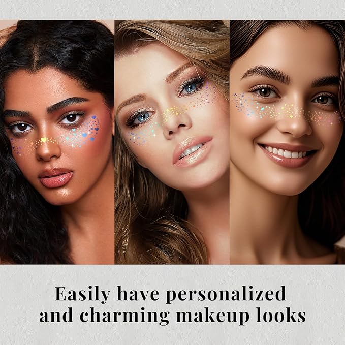 - WIDELY APPLY: Our glitter freckle patches are suitable for use in various scenarios. Whether it's for daily makeup or other occasions such as music festivals, birthday parties, graduation parties, weddings, carnivals, Christmas, Halloween, pool parties, beach parties, photo shoots, art and crafts projects, and more. Freckle patches are the best choice to add charm.