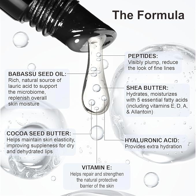 - Natural & Clean Formula: 100% vegan lip mask enriched with shea butter, cocoa seed butter, babassu seed oil, peptides, hyaluronic acid, and vitamin E. Soothes and softens even the driest lips, repairing chapped lips and preventing cracking.