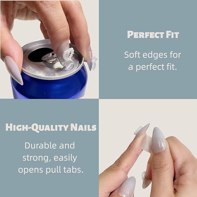 - 【Soft Back Edge, Strong Front Tip】 Our nails feature a flexible back for a comfortable fit and a reinforced front that’s tough enough to pop open soda cans—beauty meets durability.