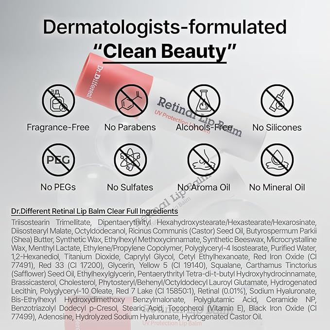 Dr.Different Retinal Lip Balm Tinted, Anti-Wrinkle Lip Treatment with Deep Hydration & Long-Lasting Moisture, K-Skincare made by Korean Dermatologist, 0.14oz