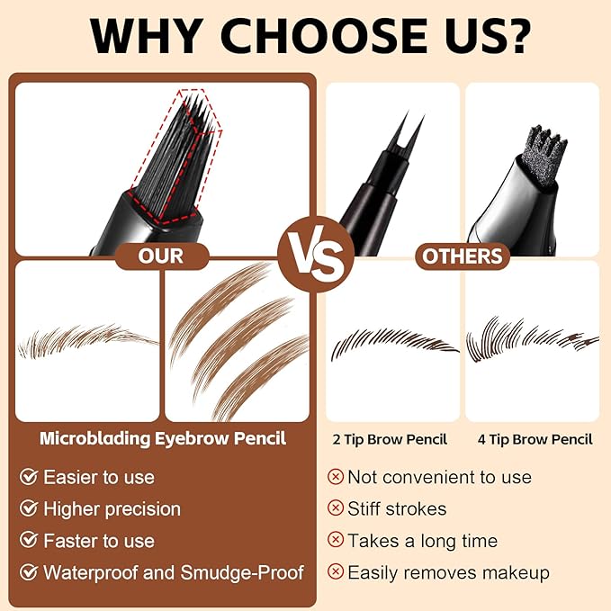 - Precision Microblading Effect: Our liquid eyebrow pencil features an angled square tip that effortlessly creates ultra-fine, hair-like strokes, delivering natural and defined brows.