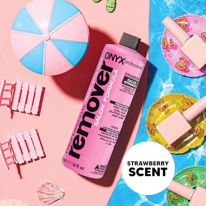 - Acetone-based, Strawberry Scent Gel Polish Remover & Nail File Kit: Onyx Professional's pure acetone nail polish remover effortlessly removes a variety of nail polish, leaving your nails looking clean and polished, while the nail file shapes your nails the way you desire