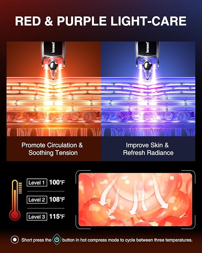 - 【4 MODES & RED/PURPLE LIGHT-CARE & FOR WHOLE BODY】kensen body gua sha tool with 4 soothing modes to meet different needs of users. Red/purple light-care can soothing tension, improve skin and make it glow. Our heated scraper massage tool is your go-to solution for soothing your neck, shoulders, back, joints, waist, legs, arms, hands, muscles. Use it every day to keep yourself refreshed.