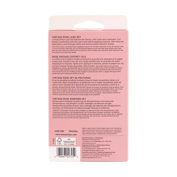 Tweezerman Vintage Rose Lash Gift Set - Makeup Eyelash Tool for All Eye Shapes