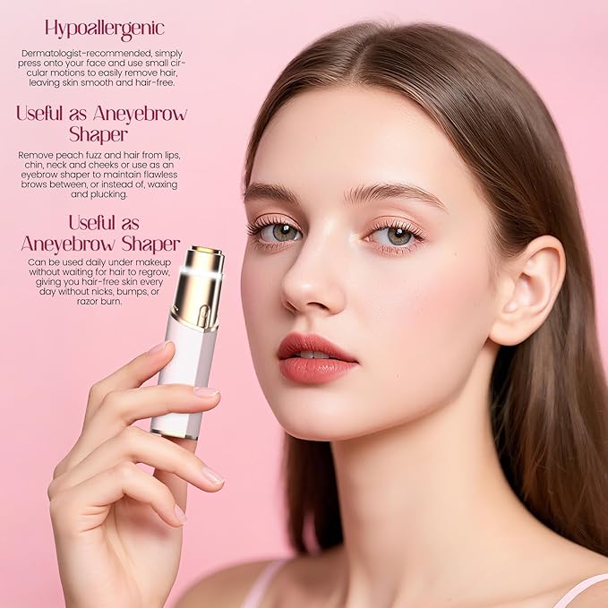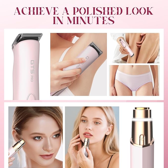 - đȘ 2 Pack-Head Precision System: Tackle all grooming needs effortlessly! The larger body trimmer handles bikini lines, armpits, legs, and arms with salon-smooth results, while the mini facial shaver delicately removes peach fuzz, shapes eyebrows, and polishes sensitive areas without irritation or bumps.