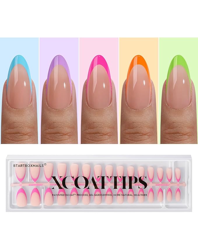 BTArtboxnails XCOATTIPS Brighter Pastel French Tip Press On Nails - Medium Almond Press On Nails, Soft Gel Nail Tips, 150Pcs Soak Off Acrylic Colorful Fake Nail Extension in 15 Sizes
