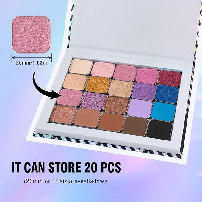 - Customizable Magnetic Makeup Palette: This empty cosmetic palette is perfect for organizing single pans of eyeshadow, blush, lipstick, or highlighter. Great for depotting and creating your own personalized makeup palette at home or on the go
