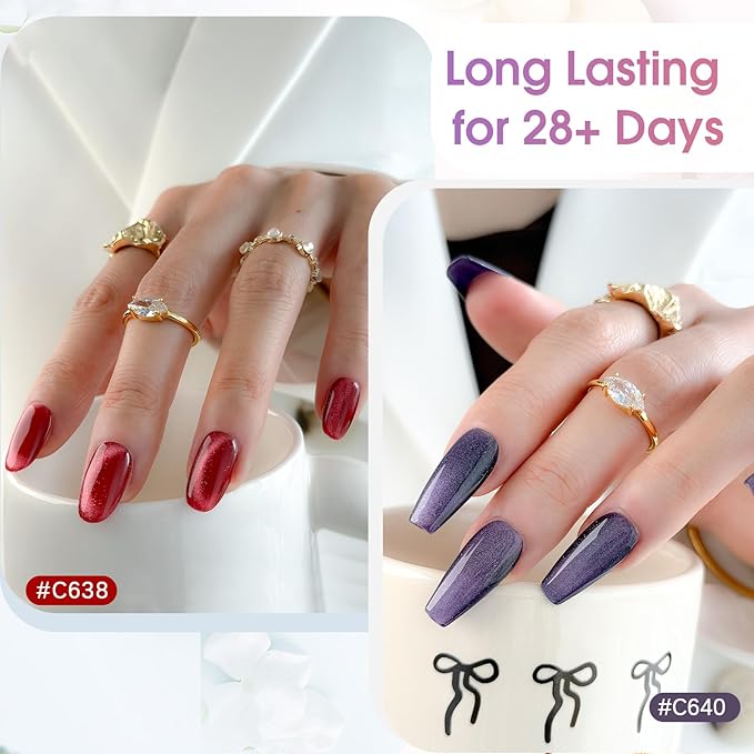 - EASY TO APPLY & CARE: Achieve professional cat eye nails in 3 simple steps: 1. Apply Base Coat and cure 2. Apply Cat Eye Polish, use magnet to create effect, and cure 3. Apply Top Coat and cure. Cure each layer: 120 seconds under a UV/LED lamp. IMPORTANT: Base Coat & Top Coat are NOT INCLUDED and must be purchased separately