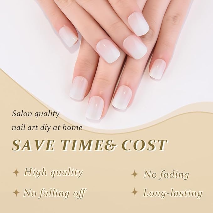- 【Salon-Quality Ombre Elegance at Home】Achieve a chic, salon-worthy manicure in minutes with these short square press-on nails, featuring a seamless nude-to-white ombre design and a glossy finish that exudes sophistication.