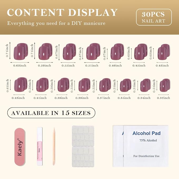 - Color : 30Pcs-Short Square-Glossy Mauve