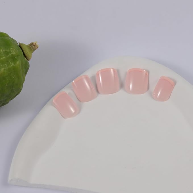 Pink French Tips Press On Nails Short, Glossy Soft Gel Press On Nails Square with Nail Glue, 15 Sizes - 30 Fake Nails Kit, Thick Natural Reusable Glue On Nails for Women, Rosy Tips