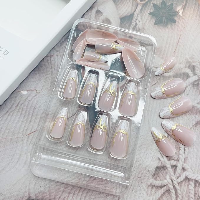 - Easy to Use: Choose our 3d gold nails press ons, polish the nail bed, paste the jelly glue we give you, press the fashion nail art in 30 seconds, and create the nail art that like,If the size is not suitable, it can be polished to the size of the nail cap with a friction tool