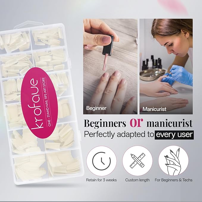 - 【Perfect Fit for Fingers】krofaue nail tips includes 504PCS french nail tips in 12 sized options (0-11#), ensuring a customized fit for every finger. Each size is clearly numbered for quick identification, eliminating guesswork during application.The generous quantity means you'll have plenty for multiple applications, practice sessions, or sharing with friends