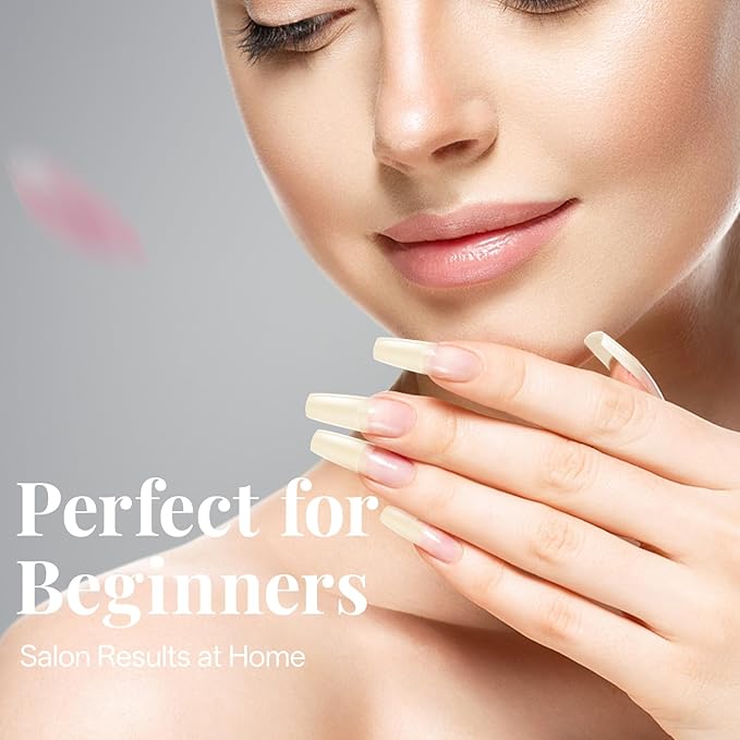 - 【Natural Looking & Versatile】Acrylic square false tips half cover design creates a flawless french manicure effect while allowing your natural nail to show through for a believable, blended appearance.The square nails natural base color serves as an ideal canvas for any polish color