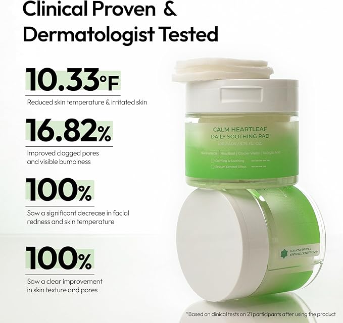 FreeGo Calm Heartleaf Daily Soothing Pad (100 Pads), K-Beauty Facial Toner Pads for Sensitive or Acne-Prone Skin, Instant Soothing Skin Repair