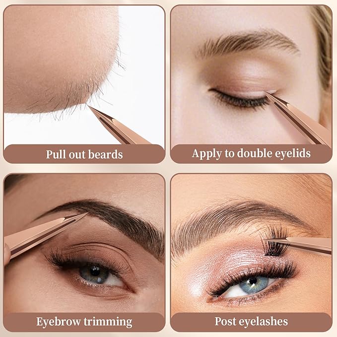 Pointed Tweezers for Women Facial Hair, Sharp & Precision Stainless Steel Tweezer for Eyebrows, Facial Hair and Fine Hairs Removal (Rose Gold)