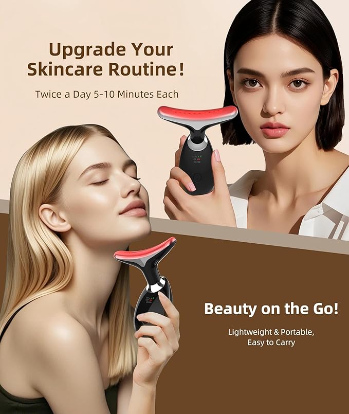 - 7 Color Face Light Therapy - Our facial massager for face and neck is not just a skin care tool but a double chin reducer. The uniquely arched massager fits well and glides smoothly on your skin, helping to enhance the absorption of skincare products.