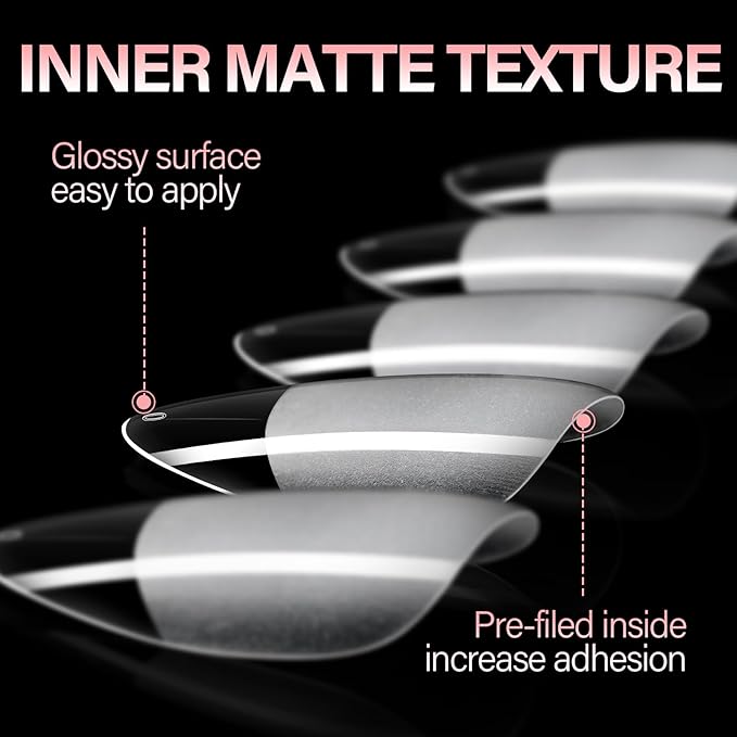 - 【Fits Nail Curvature, Natural & Comfortable, No Scratching】: Designed based on the natural curvature of nails, with edges finely polished to 0.1mm rounded corners. The fake nail fits the natural curve of your nails without air bubbles, ensuring no foreign body sensation and flexible finger movement. The smooth, burr-free surface prevents scratches on clothes or skin, making daily wear safer.