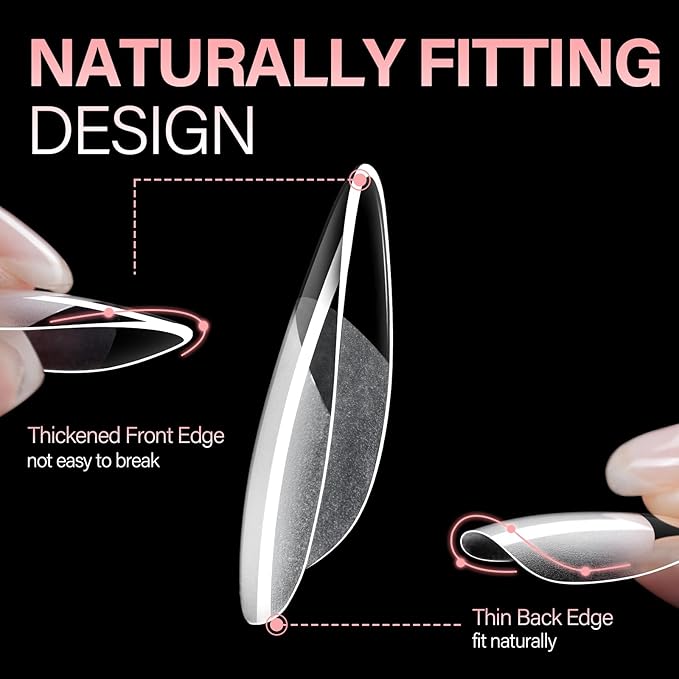 - 【AILLSA fake nails, Paired with AILLSA glue for better fit】: Our soft gel tips feature “Thin back edge, thick front edge”. The thinner back edge can make the soft nail tips fit your nails better, which will not make you feel uncomfortable. Also, the half matte nail tips are firmer bonding to your nails for a seamless fit with no air bubbles; The thickened front edge makes it not easy to break or bend, having longer lifespan.