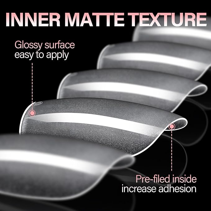 - 【Fits Nail Curvature, Natural & Comfortable, No Scratching】: Designed based on the natural curvature of nails, with edges finely polished to 0.1mm rounded corners. The fake nail fits the natural curve of your nails without air bubbles, ensuring no foreign body sensation and flexible finger movement. The smooth, burr-free surface prevents scratches on clothes or skin, making daily wear safer.