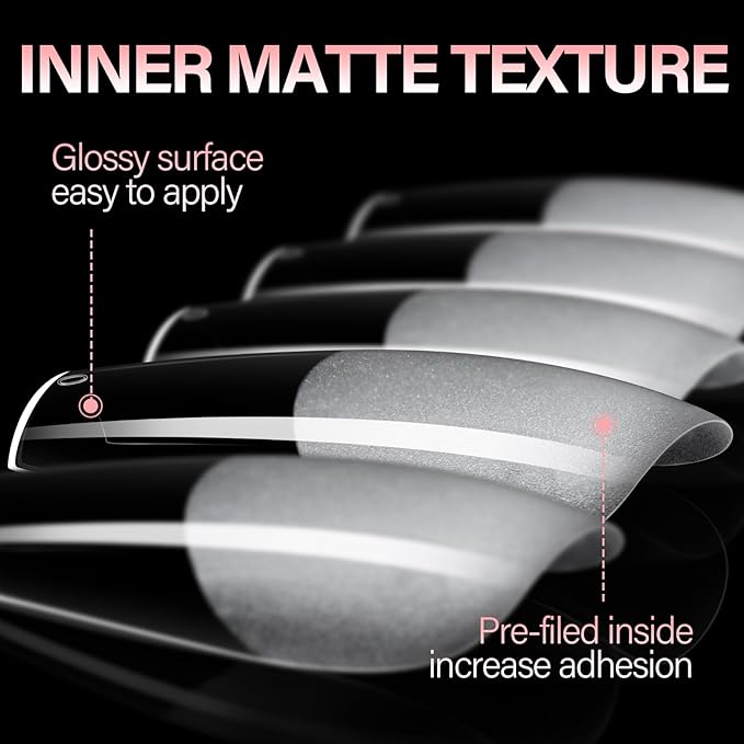 - 【Fits Nail Curvature, Natural & Comfortable, No Scratching】: Designed based on the natural curvature of nails, with edges finely polished to 0.1mm rounded corners. The fake nail fits the natural curve of your nails without air bubbles, ensuring no foreign body sensation and flexible finger movement. The smooth, burr-free surface prevents scratches on clothes or skin, making daily wear safer.