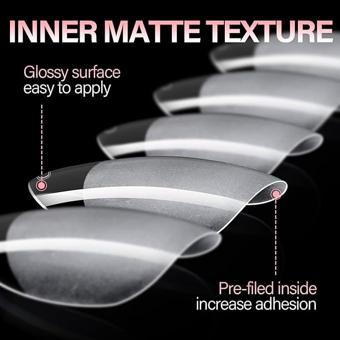 - 【Fits Nail Curvature, Natural & Comfortable, No Scratching】: Designed based on the natural curvature of nails, with edges finely polished to 0.1mm rounded corners. The fake nail fits the natural curve of your nails without air bubbles, ensuring no foreign body sensation and flexible finger movement. The smooth, burr-free surface prevents scratches on clothes or skin, making daily wear safer.