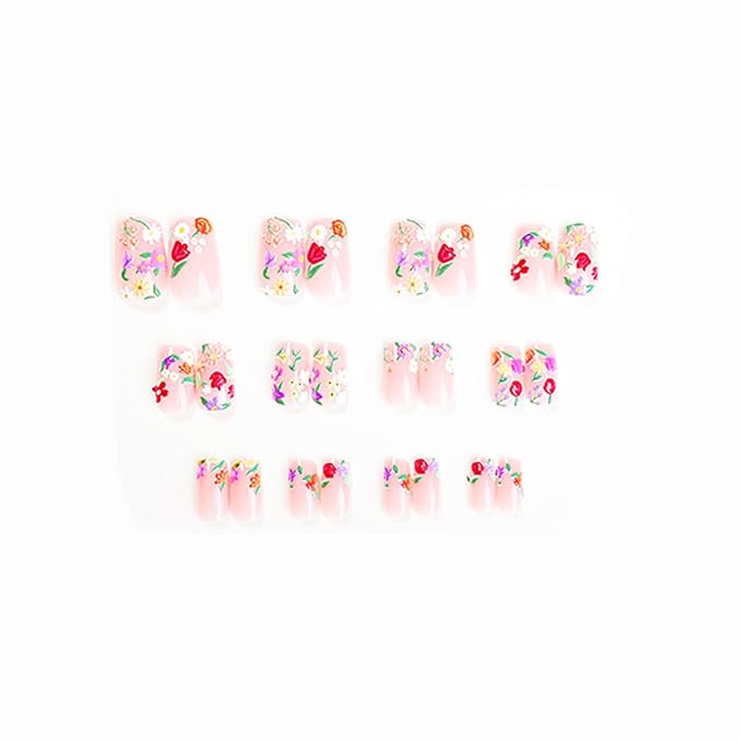 - Package: You will get 24 pieces flower false nails, 1 piece nail file, 1 piece nail double-side stickers, 1pcs wooden stick for removing nails tips; There are 12 different sizes of fake nails; You can choose the most suitable fake nails for yourself