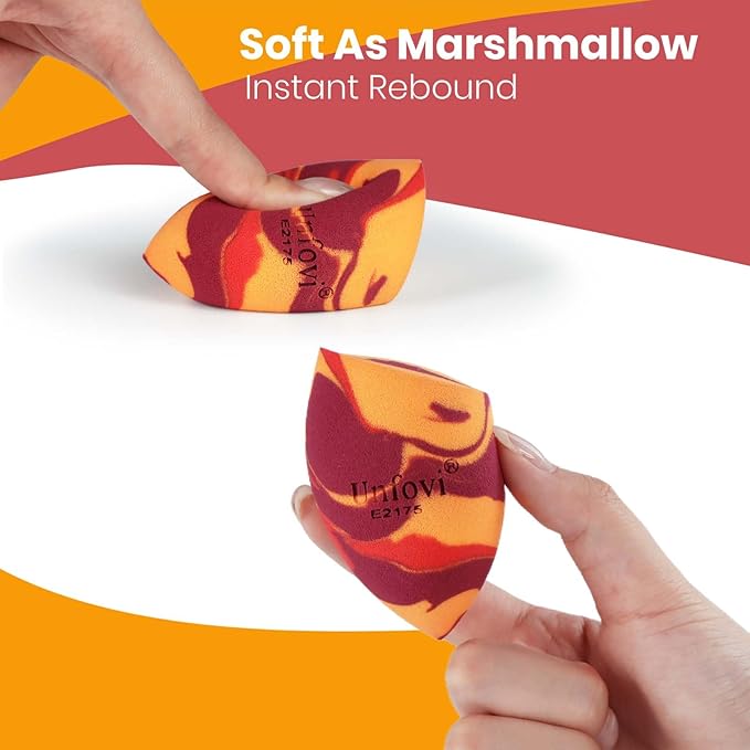 - 【"Exclusive" Tricolor Technology,Doesn' t look “dirty”】Unfovi Tri color makeup sponge doesn' t look “dirty” once it touches foundation, Coz it's a deep and shallow color combination, and the tri color also gives a guide on where to use it: the first color is to use around eyes and forehead while other two colors are to use for contouring around cheekbones and jawlines. The Make up sponges are soft and gentle on skin but retains its shape and tri color style after squeezing and rubbing while cleaning