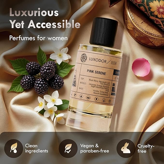 - Pink Serene by LUXODOR is a perfumes for women blend featuring top notes of mandarin orange, silkwood blossom, and orange blossom; middle notes of night-blooming cereus and Bulgarian rose; and a warm perfume base of vanilla, tonka bean, and sandalwood
