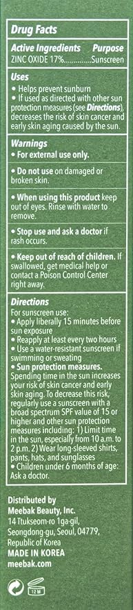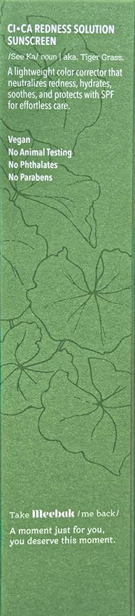 Meebak Cica Redness Correcting Sunscreen SPF 50 | Color-Correcting Moisturizer & Tone-Perfecting Primer with Niacinamide & Centella Asiatica | For Fair-to-Medium Skin Tones | Korean Skin Care