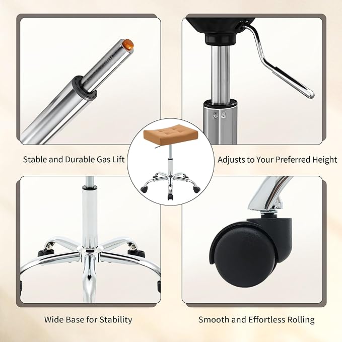 Rolling Stool Adjustable Height (300lbs Capacity) (Sturdy Base) Multifunctional Nail Tattoo Vanity Massage Stool (Camel Brown)