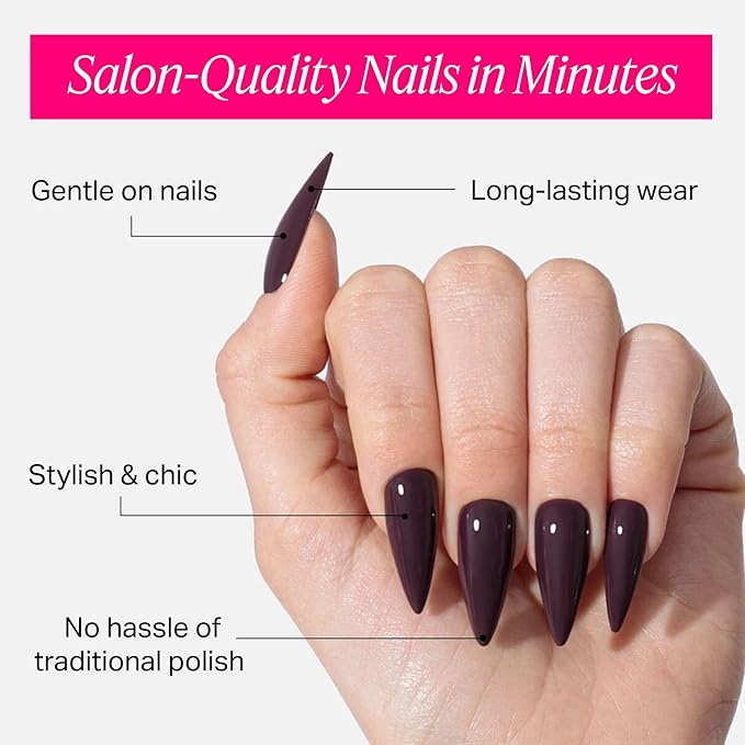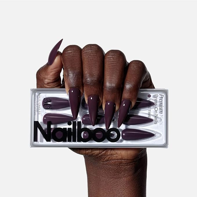Nailboo Press On Nails, Salon-Quality Reusable Fake Nails for Fast DIY Manicure with Strong Hold Nail Glue for Press Ons, Nail File, & Alcohol Prep Pads, Wine Time