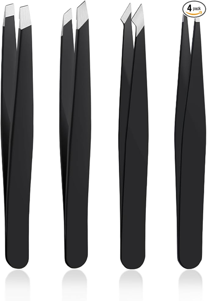 4 PCS Stainless Steel Tweezers Set – Precision Tweezers for Ingrown Hair, Facial Hair, Splinter, Blackhead and Tick Remover