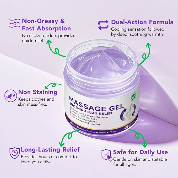 2 Pack Joint Massage Purple Gel, Soothing Massage Cream for Joint Activities, Muscle, Knees, Lumbar, Neck, Back, Hands/Feet, Light-Weight & Easliy Spread for Post-Workout, Long-time Sitting|3.53Oz