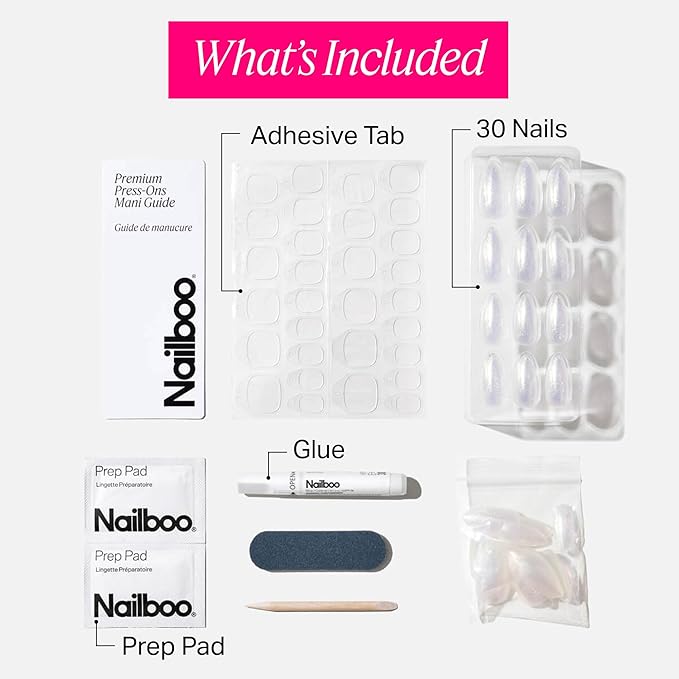 Nailboo Press On Nails, Salon-Quality Reusable Fake Nails for Fast DIY Manicure with Strong Hold Nail Glue for Press Ons, Nail File, & Alcohol Prep Pads, Celestial Sweetie